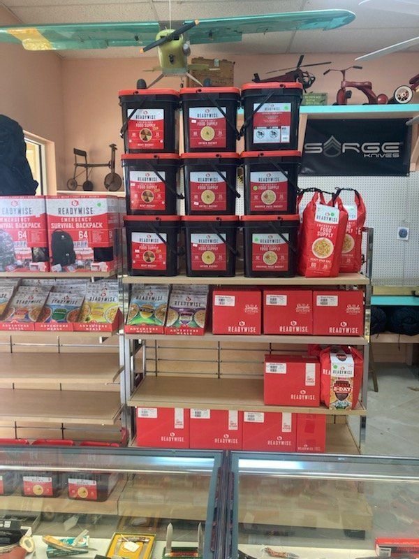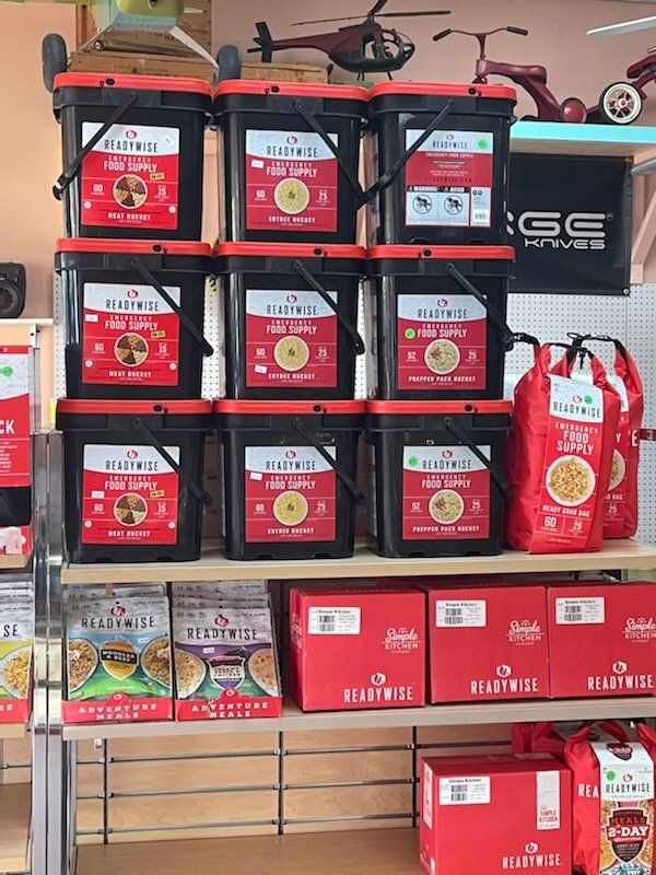 We carry ready wise emergency food supplies that can be stored for up to 15 years.
